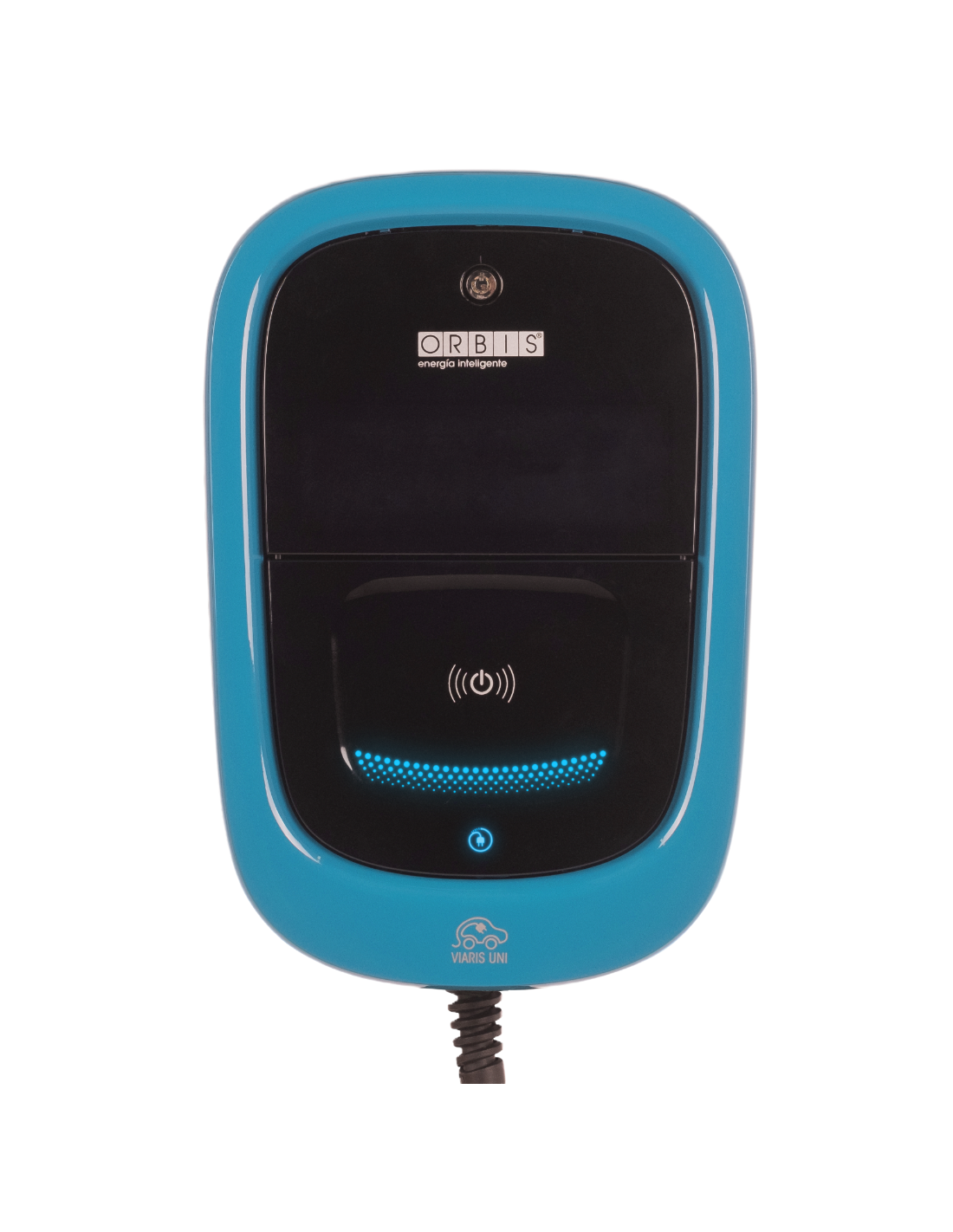 Punto de recarga, modo 3, monofásico 230V. Marca Orbis, modelo Viaris Uni +, para instalación mural.